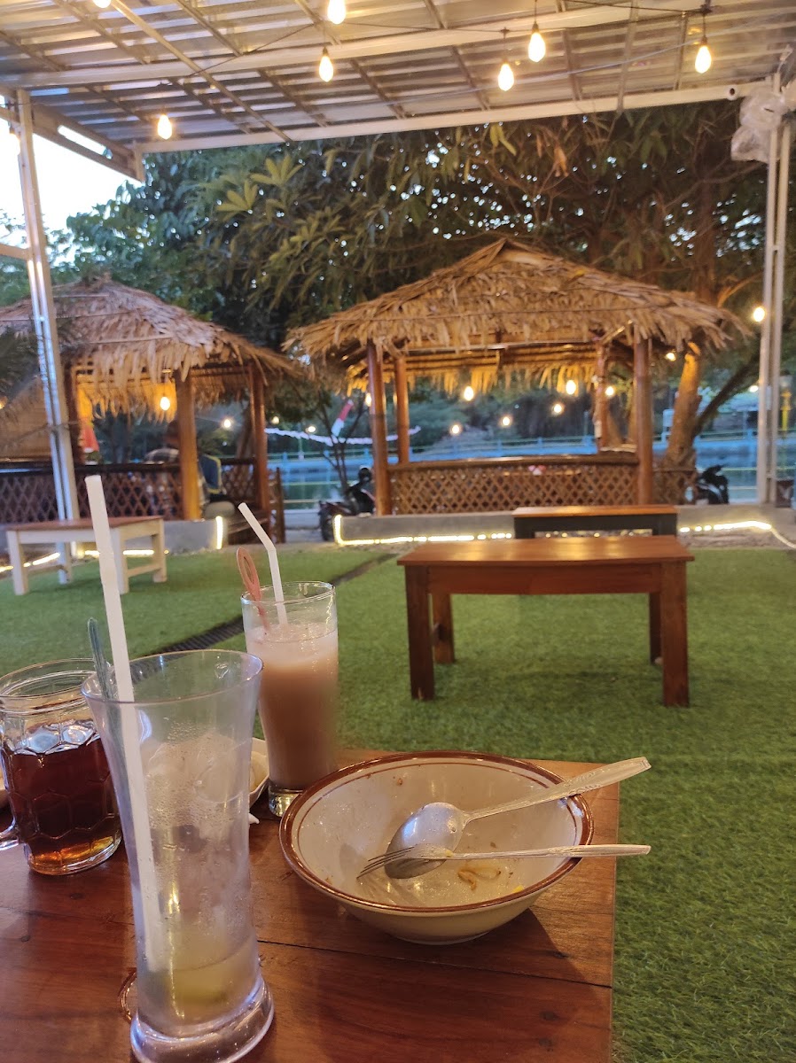 tempatnya nyaman, luas juga (ada yg kursi atas dan juga gubug lesehan gitu). untuk varian menu lumayan banyak, juga ada beberapa jajanan ataupun gorengan. untuk rasa 9/10, harga juga terjangkau. toilet ada, mushola juga ada. di sini juga ada ala-ala taman kelinci, bisa kasih makan kelincinya, jadi cocok kalau ajak si kecil.